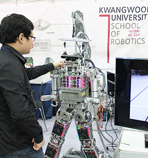 The Division of Robotics encourages its students to “develop creativity through balanced acquisition of hardware and software knowledge”. To this end, the Division operates on a system called ‘Quad System’ which promotes balanced learning of English, mathematics, major theories and practical courses. Through this system, the Division aims to offer knowledge more effectively and systematically, and ultimately produce globally competitive engineers, engineers who can work in diverse fields and skilled professionals who can lead the robotics industry and contribute to the national development. Kwangwoon University’s Division of Robotics also conducts research on various robotics areas, convergence IT and other relevant advanced technologies.