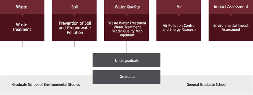 The Department of Environmental Engineering offers a curriculum designed to produce professionals who can solve environmental problems with their education and knowledge in basic theories and application of physical, chemical and biological processes and engineering knowledge in design, planning, construction and maintenance of environmental facilities. The Department has exclusive labs for each major and supports students’ research by providing the most advanced research equipment.